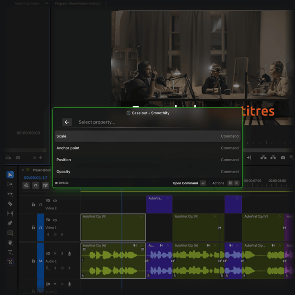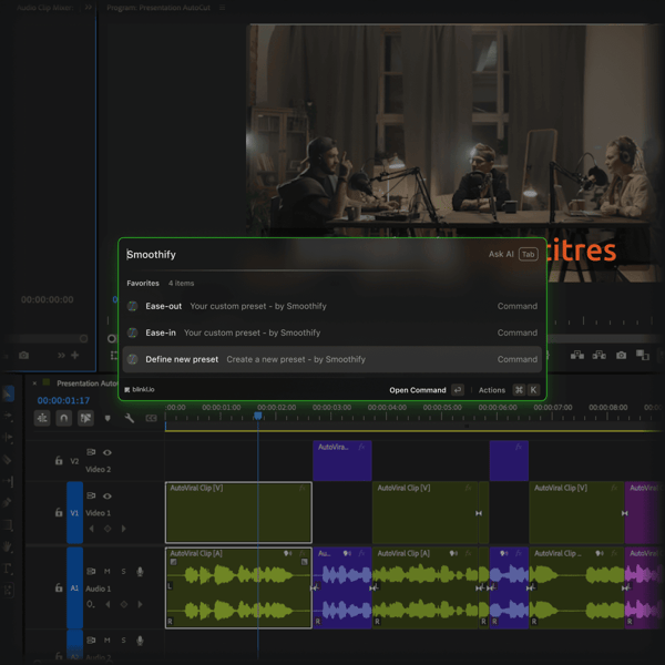 Type “Smoothify” in blinkl.io and run actions without leaving Premiere.